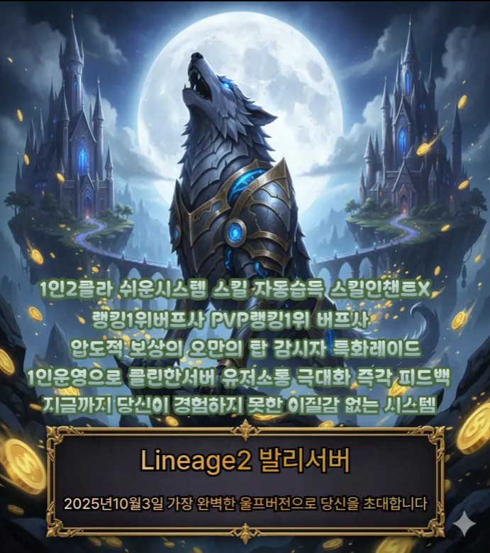 ✅✅리니지2 발리서버 울프버전 난이도 완화 실유저70명이상✅✅